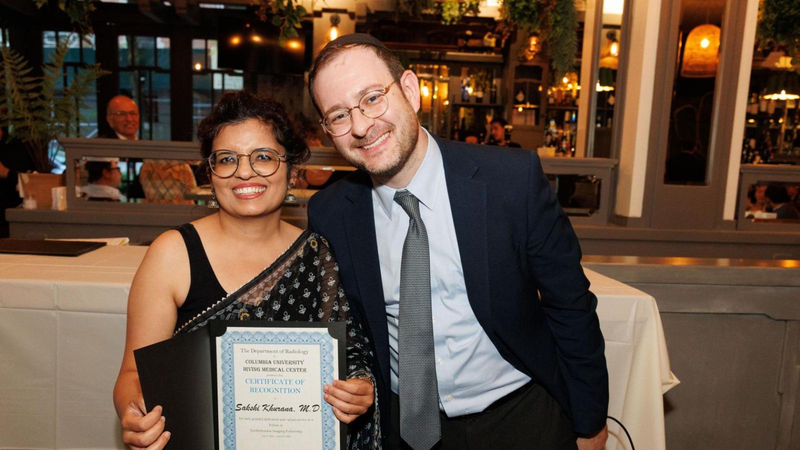 The Department of Radiology honored this year's graduating class of radiology trainees on June 10, 2024, at The Ellington in Manhattan. The graduating class was made up of six diagnostic radiology residents, one interventional radiology integrated resident, one medical physics resident, and 15 fellows. Graduating diagnostic radiology residents successfully completed the four-year diagnostic radiology residency and will all go on to fellowship training. Two additional residents who trained with the class of 2024 are part of the the five-year Interventional Radiology Integrated Residency Program and will complete one more year of training at Columbia.